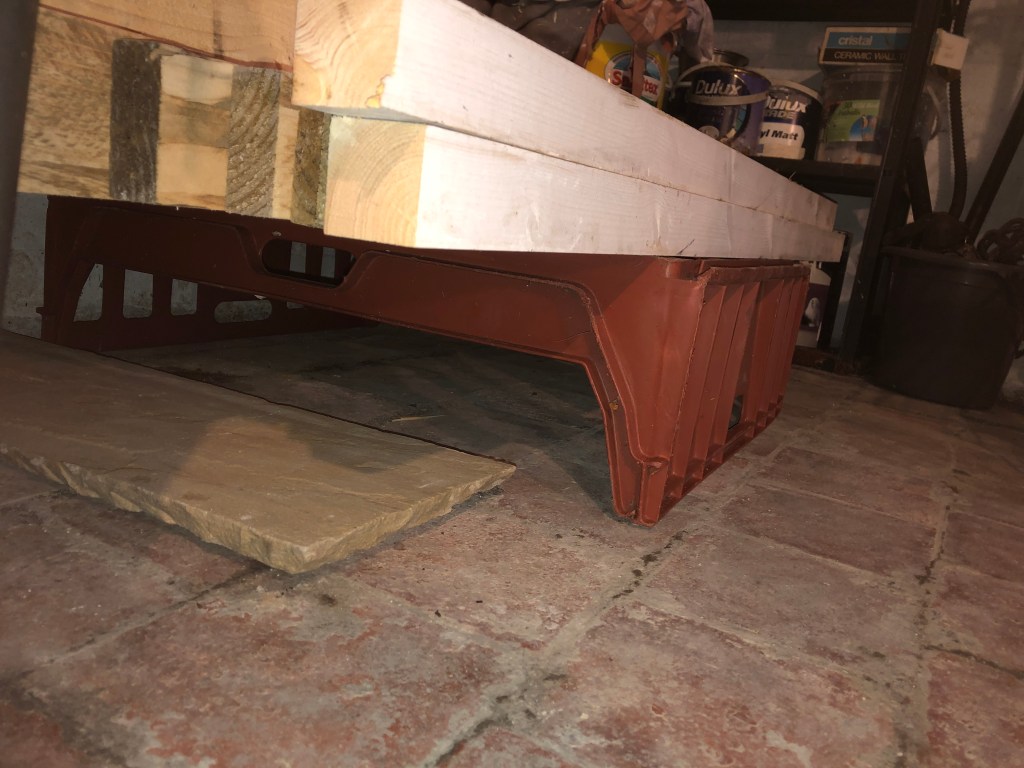I had no idea about their use; I merely felt they might be helpful. Hence, they slept in my basement for two months, until this week I started to sort out the wood pieces. I realized that their height is pretty suitable to be a base for storing the woods, preventing moisture and mould to corrode the pines. Besides, I could spreadly stoke wet and dry woods on different base.