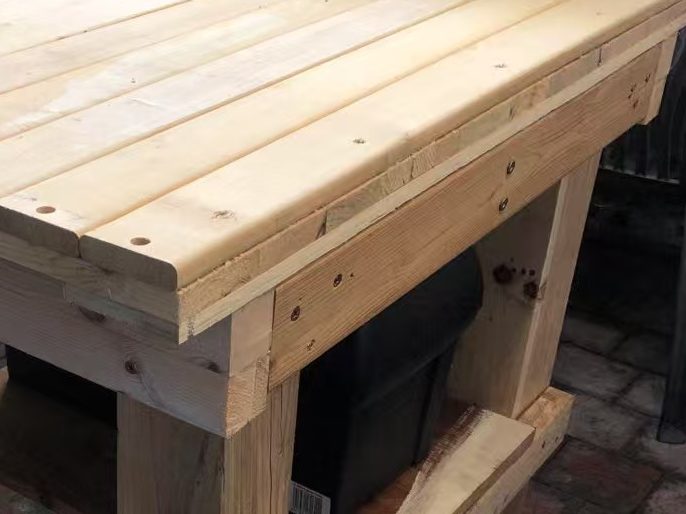 What challenges did I encounter when I used the timber for the legs of my woodwork bench? * The surface machining, due to that the wood had been corrupted and covered by moss and fungi * Hard to saw into different pieces with the same length, because the cross-sectional side length of the timber is about 9 cm to 10 cm. * Flating six faces to Squaring the timber, according to the wood, which was warped by undergoing a long time in the outdoor environment. * Adding fasteners to prevent it from splitting further.